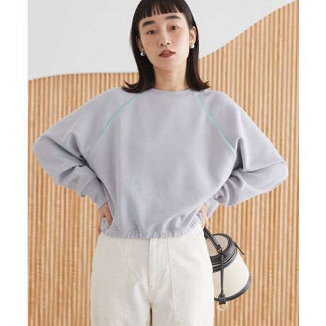 肌触りのもっちりとした素材で仕立てたデザインプルオーバー。ラグラン切り替えに配色ラインを施し、スポーティなアクセントをプラスしました。裾のドローコードを絞って丸みのあるフェミニンなシルエットに変えられるのも魅力的。トレンドのワイドボトムやスカートも相性良く、デイリーユースにぴったりなアイテムです。透け感[なし]
