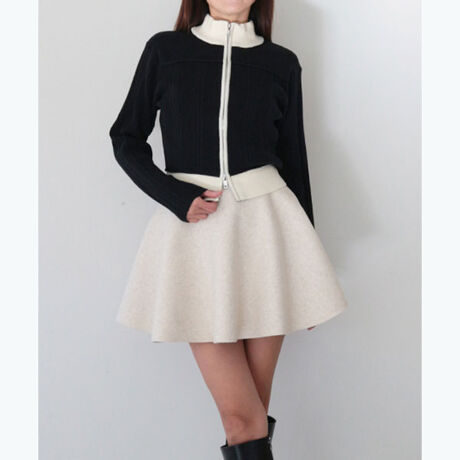 ミラノリブとランダムリブで編み立てたコンパクトなニットブルゾン。