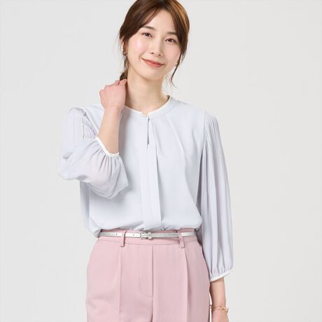 袖プリーツがエレガントな印象を与えてくれるブラウス。