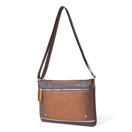 フロントにはジッパー付きポケットを配置し、片側が蛇腹仕様のマチ付きになっているため、収納力と取り出しやすさを両立。