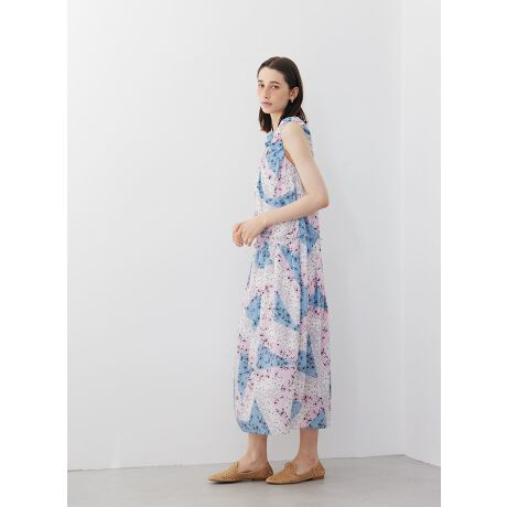 程よい光沢感のあるシルクのような高級感のある素材に、オリジナルの個性的な花柄でパッチワーク風プリントを施しました。
