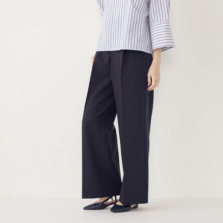 落ち感のある素材とフロントのタックで腰周りから足のラインがすっきりと見え、綺麗見えと履き心地の良さが叶うのもポイントです。