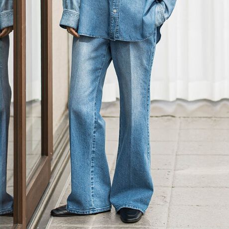 膝から裾に掛けて緩やかなフレアシルエットで仕立てた圧倒的美脚ジーンズ。