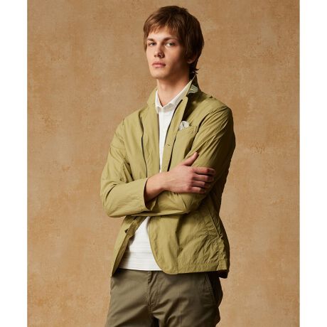 ■素材細番手のナイロンをハイパワーストレッチで織り上げ、タンブルワッシャー仕上げをしたJOSEPH ABBOUDオリジナル素材。ナチュラルな風合いとシボ感が特長です。軽量な素材で、ドライタッチで肌離れもよく、しわになり難い素材です。また、生地の撥水加工にはテフロンECOエリート(有害物質を含まず、環境に優しい新たなフッ素非配合の撥水加工)を施しています。