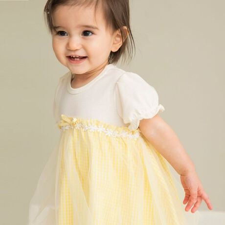 チュール使いドッキング半袖カバーオール