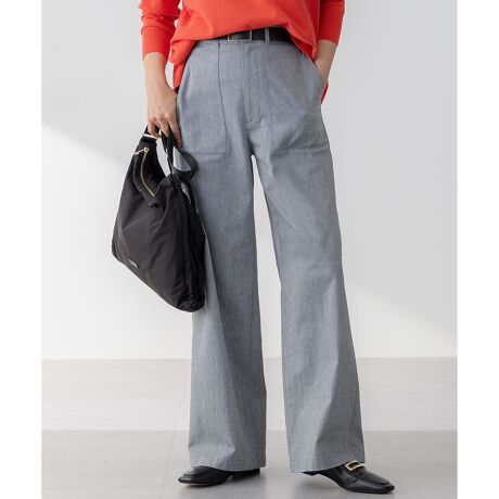 リニューアルしたワイドストレートシルエットのベイカーパンツ。腰回りにゆとりをつけてバランスを修正してアップデートしました。定番のアイテムですがより快適な着用感を実現。ヒップからすそにかけては程よく分量感のあるシルエットで着回し力抜群なアイテム。ステッチの入ったポケットがアクセントになっており、トップスをインして着た時もメリハリがでます。季節を問わず着まわせる素材を使用しているので様々なトップスとの相性が良く、大人カジュアルなスタイリングが叶います。カラーは、ネイビーと白の糸を使用したネイビーシャンブレー(#075)、春夏に重宝するホワイト(#001)、柔らかく馴染むベージュ(#033)、カジュアルな着こなしにぴったりのカーキ(#054)、鮮やかな色味が印象的なレッド(#010)の5色展開です。