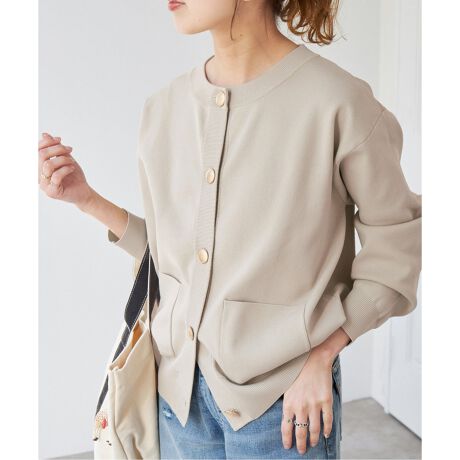 大きなゴールド釦が華やかですが、スウェットの様な丸みあるシルエットでカジュアルにも着られそう◎