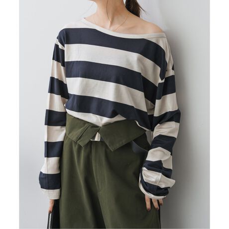 大人カジュアルに嬉しいボートネックボーダープルオーバー。