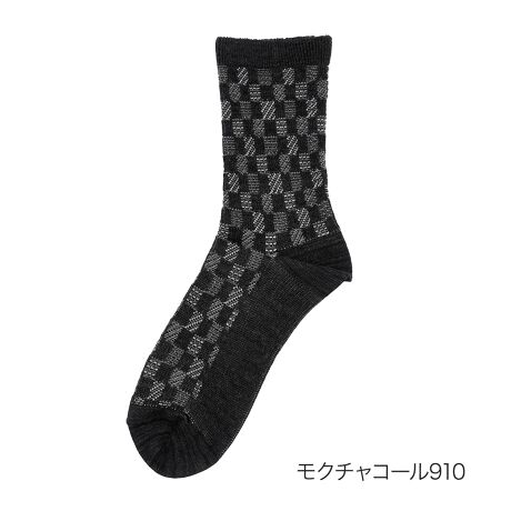【FUKURASHI(ふくらし)】 靴下 ブロック柄 クルー丈 口ゴムなし(37786W)