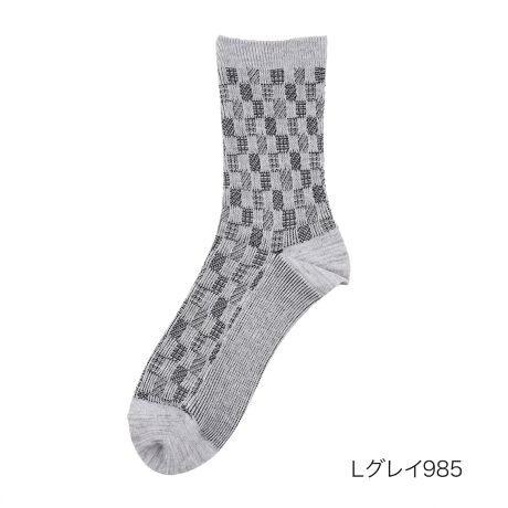 【FUKURASHI(ふくらし)】 靴下 ブロック柄 クルー丈 口ゴムなし(37786W)