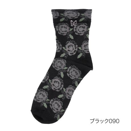 【ハナエモリ】 靴下 花柄 クルー丈 やわらか綿混(3100-02N)
