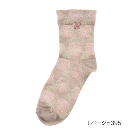 【ハナエモリ】 靴下 花柄 クルー丈 やわらか綿混(3100-02N)