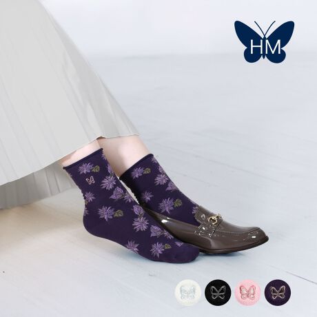 【ハナエモリ】 靴下 花柄 クルー丈 表糸綿100%(3100-04N)