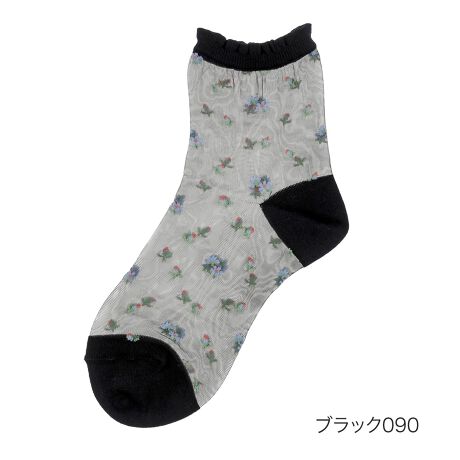 ●特徴:・クルー丈・シアー 小花柄・履き口ゆったり