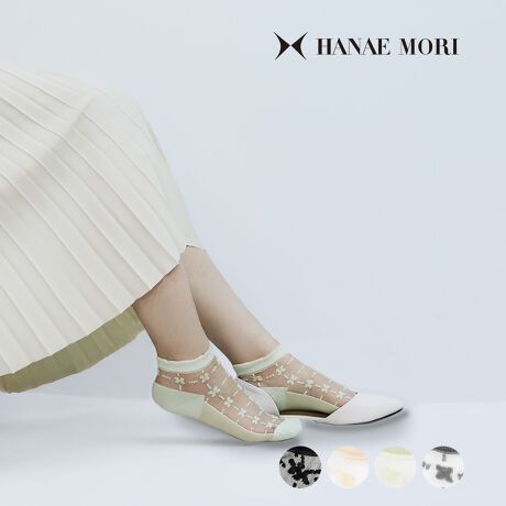 1945年創業、「エレガンス」を永遠のテーマとしているブランドHANAE MORI(ハナエ モリ)のシアーソックスです。スニーカー丈で透け感のある可愛らしいデザインです。履き口はやわらかく、ゴムの跡がつきにくくなっています。パンプスと合わせてシックで上品に、スニーカーやサンダルと合わせて抜け感をプラスできる一足です。
