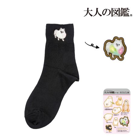 「満たして大人の好奇心」をキャッチフレーズに、ニッチなテーマを図鑑風にした【大人の図鑑】からショート丈ソックスの登場です。光るポメラニアンを刺繍したおもしろかわいい一足です。スニーカーにもパンプスにも合わせやすいアイテムです。