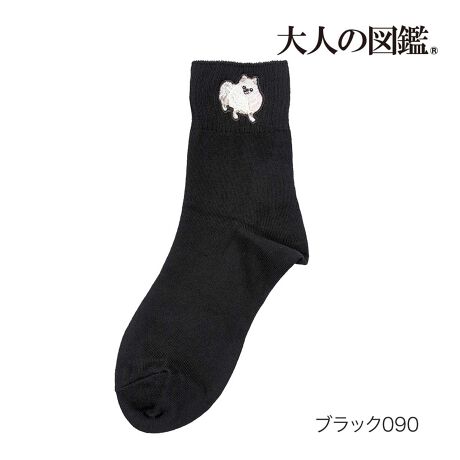 【大人の図鑑】 靴下 ポメラニアン編 無地 リブ ワンポイント刺繍 ショート丈 ポメラニアン(31