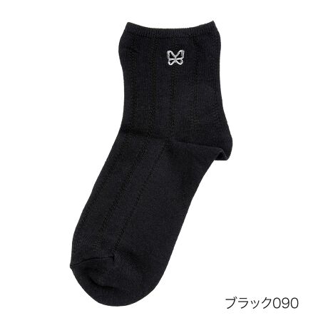 【ハナエモリ】 靴下 無地 片面刺繍 クルー丈 履き口ゆったり(3300-10M)