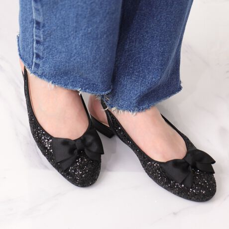 ビッグリボン グリッターバックバンドフラットパンプス