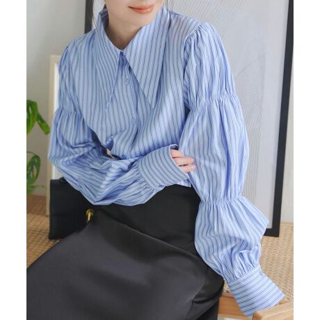 パフスリーブのお袖が女性らしさを出してくれるシャツ。