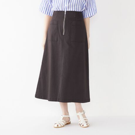 広がりすぎないフレアシルエットと長めの丈感のバランスが、上品な印象で履いていただける1枚です。