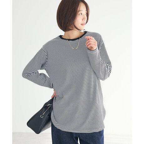 クルーネックにゆとりあるフォルムとラウンドヘムカットがお洒落なアクセント。