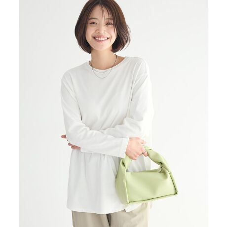 クルーネックにゆとりあるフォルムとラウンドヘムカットがお洒落なアクセント。