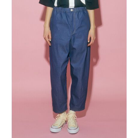 1970年東京都町田市にOPENした 日本で最初ハンバーガーチェーン「DOMDOMハンバーガー」。独自性のある商品「丸ごとカニバーガー」や「厚焼きたまごバーガー」を提供し、 常にお客様の笑顔を求めて「美味しいこと。楽しい事こと。」にチャレンジしています。そんなドムドムハンバーガーとフラボアのスペシャルコラボレーションが復活。【素材】綿/ポリエステルの染め分けでデニムライクに仕上げたツイル素材はサラッとした表面感と見た目以上の軽さがポイント。【デザイン】調理服の「コックさんパンツ」からインスピレーションを得たイージーながらワークテイストも入ったテーパードパンツ。ヒップから太ももにかけてゆったりとしながらも裾に取ったダーツで丸みのあるテーパードシルエットをつくっています。ウエストもゴムとヒモでイージーなところがキメ過ぎないヌケをつくっています。裾を折り返すと見える「どむぞうくん」のテープやヒップについたスペシャルなフラッシャーがポイントになっています。*こちらの商品はユニセックス商品です。【ブランド情報】FRAPBOIS/フラボア2001年にブランドスタート。「大人げない大人の服」をコンセプトに、大人が着るリラックスしたデイリーウェアを提案するコレクションブランド。レディースとメンズのアイテムをご用意しています。