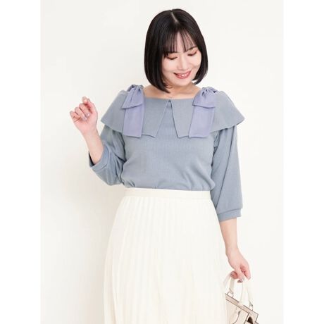 7分袖肩リボンケーププルオーバー