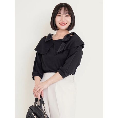 肩リボンが華やか!トレンド感溢れるオフショルプルオーバー。