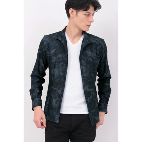 オーシャンウェーブデニムプリントを施したハイテンションストレッチシャツ。
