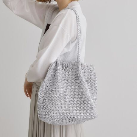 メタリック素材の繊細な編みが上品なトートバッグ。
