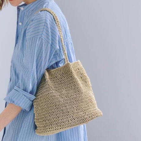 編み地の切り替えとハンドルのタックデザインがポイント。