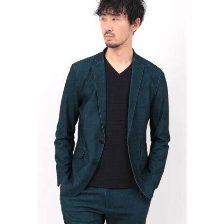 マーブル調プリントの4WAYトリコット素材を使用した一重仕様のテーラードジャケット。