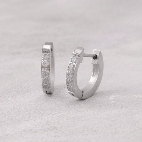 シンプルなフープタイプのピアスにキラッと煌めくビジューを配したデザイン。