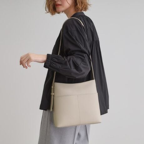 ショルダー横のパーツを捻るとショルダーが取り外せるので長さの調節ができるデザインです。