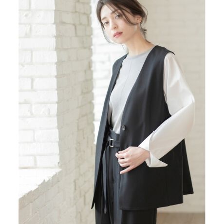 上品に着こなせるノーカラーVネックジレ【セットUP対応可能】
