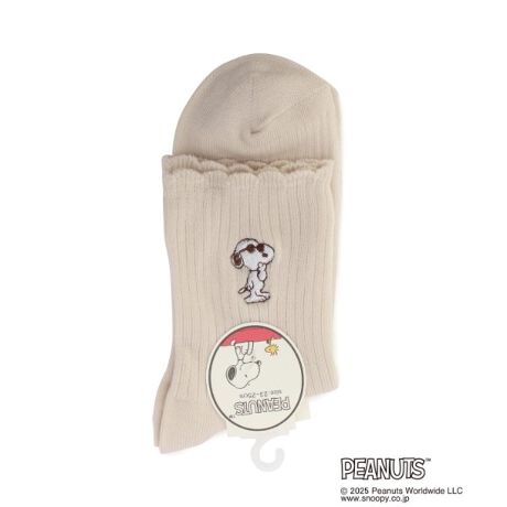 ◆SNOOPY ロークルーソックス リブ刺繍柄