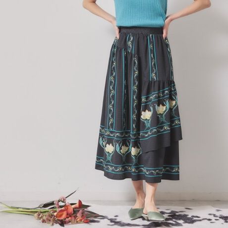 ウエストは総ゴムなので快適な着心地で、イレギュラーに入った切り替えが動く度に優しく揺れ、