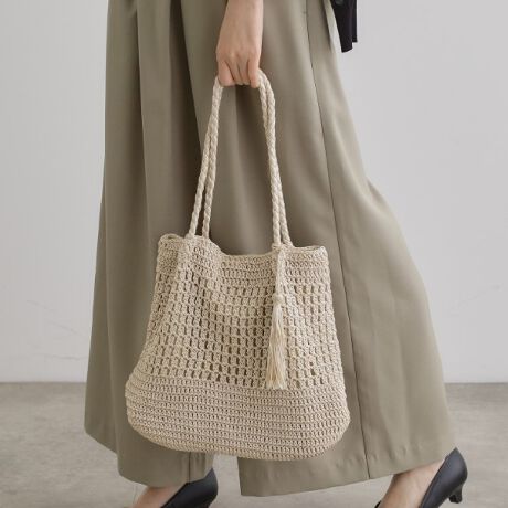 レーヨン素材で編み上げた肩掛けトートバッグです。