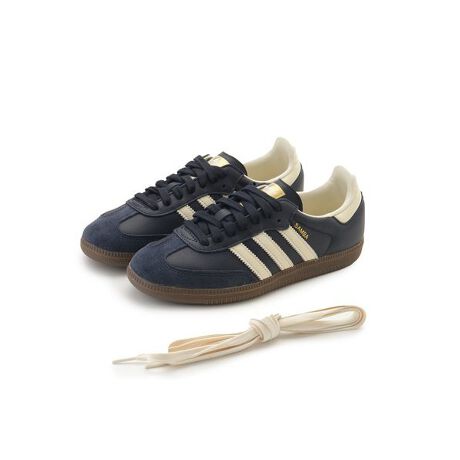 アッパーにはレザー素材を使用し、多彩に合わせやすいデザインに仕上げた「SAMBA OG」。細身のフォルムに、ガムソールで仕上げることによりクラシック感溢れる仕上がりになっています。シックなネイビーカラーは、カジュアルにも綺麗目にも合わせやすい。