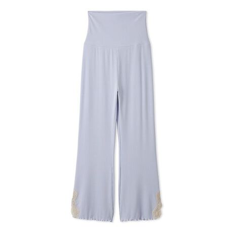 ウエストウォーマーが付いた、春夏の冷え対策にも重宝するメロー裾のロングパンツ。