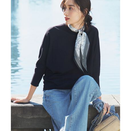 天竺編みで仕上げた、7分袖のクルーネックドルマンプルオーバー。前後差を少し付け、襟もとを少し後ろに抜いて着用すると、より女性らしくやわらかな印象になるよう仕上げています。袖口にきかせたスリット開きもポイント。ゆったり感のある身頃で体型カバーが叶い、あらゆるボトムと好相性なので幅広く活躍する一枚です。カラーは、抜け感のあるカーキ(#054)、華やかなレッド(#010)、明るい印象のイエロー(#040)、上品なネイビー(#075)、爽やかなライトグリーン(#062)の5色展開です。