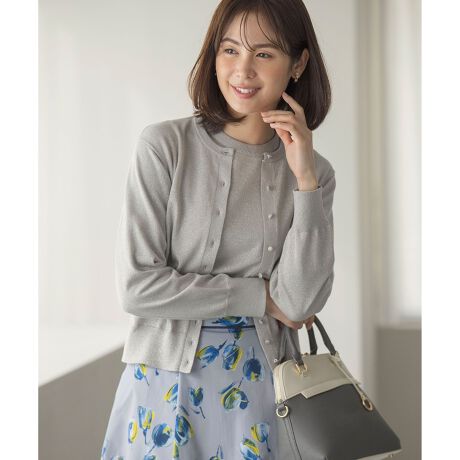 ■デザインクルーネックの長袖ベーシックカーディガン×5分袖ニットがセットになったアンサンブルニット。多めに付けたサテンのクルミ釦が上品な印象です。インナーのニットは首元を美しく見せてくれる詰まったクルーネックで、ふんわりとした5分袖が腕を華奢にみせてくれます。つかず離れずのフィット感で、体のラインを拾いすぎないよう計算されたデザインもポイント。シンプルなデザインのカーディガンとプルオーバーは単品でも活躍間違いなし。春、夏、秋と3シーズン使える素材感で、いつものスタイリングをブラッシュアップしてくれます。