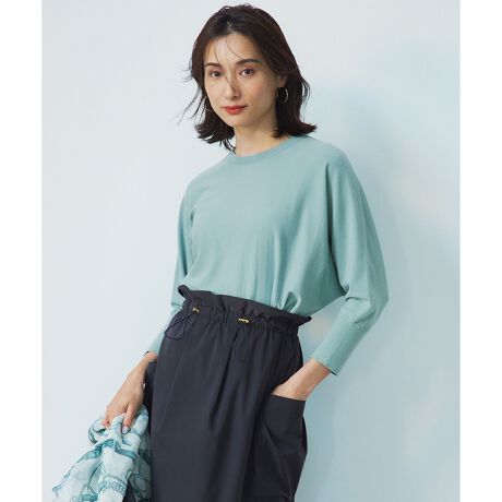 天竺編みで仕上げた、7分袖のクルーネックドルマンプルオーバー。前後差を少し付け、襟もとを少し後ろに抜いて着用すると、より女性らしくやわらかな印象になるよう仕上げています。袖口にきかせたスリット開きもポイント。ゆったり感のある身頃で体型カバーが叶い、あらゆるボトムと好相性なので幅広く活躍する一枚です。カラーは、抜け感のあるカーキ(#054)、華やかなレッド(#010)、明るい印象のイエロー(#040)、上品なネイビー(#075)、爽やかなライトグリーン(#062)の5色展開です。