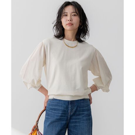 袖の透け感が爽やかで季節の変わり目に活躍するニット