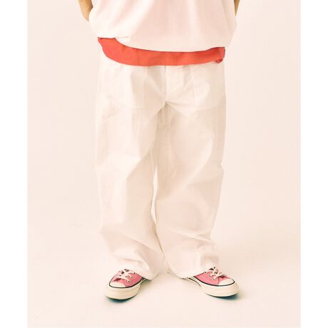 ワイドシルエットでも丸みがあることでおさまりが良いため様々なスタイリングに活用いただけます。素材は軽めのコットンナイロンを採用。ゴールデンミルズらしくアーカイブの雰囲気を大事にしながら現代的には着やすい素材を選択しています。