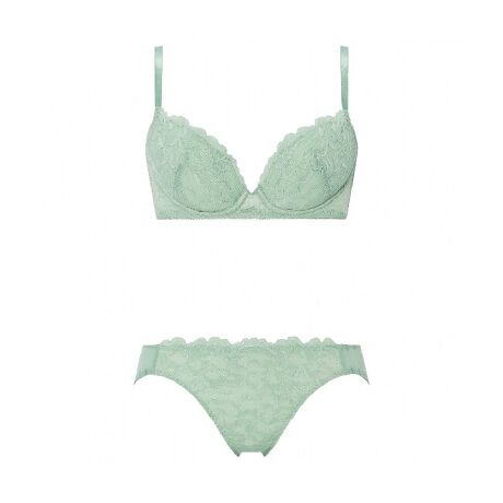 カップとレースのカラーコンビネーションが魅力的な、大柄花レースでフェミニンな気分を楽しめるコレクション。