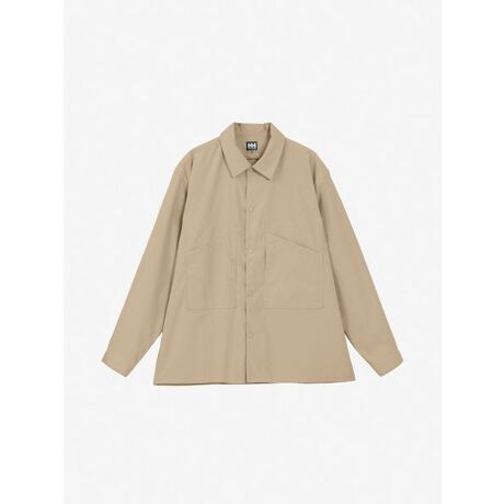 街とアウトドアフィールドをボーダレスにつなげるシャツジャケット。フランス海軍で使用されていたジャケットをベースに、HELLY HANSENらしい機能性をプラスして仕上げています。ポリエステル100%ながらナチュラルな風合いの生地を使用しており、縦と横の糸の太さを変えることで耐久性をもたせています。コットン100%素材に比べてシワになりにくく、乾きやすいのも特長。多少の雨なら対応できるはっ水性や、UVプロテクト(UPF50+、紫外線カット率95%以上)機能といった、アウトドアシーンでうれしい機能も搭載しています。ややゆったりとしたボックスシルエットで、シャツとして単体でも、羽織りのアウター感覚でも着やすいデザイン。襟元は、開襟にもできるタイプです。フロントに大きなポケットを配しているのが特徴的で、収納力だけでなくデザインのポイントにも。サングラスが収められるポケットは海軍らしいディテールです。同素材のパンツとのセットアップもおすすめ。環境への負荷に配慮して、素材の一部にリサイクル糸を使用しています。