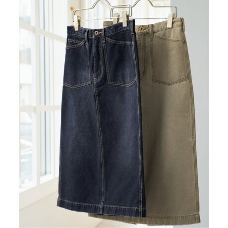 シルエットはトレンド感のあるひざ下丈のタイトスカートで、同シリーズのカバーオールとセットアップもおすすめ。